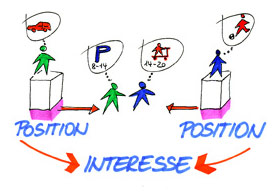 Positionen zu sachlichen Lösungen, indem die Interessen und